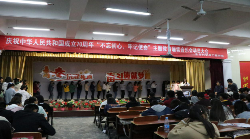 為貫徹“不忘初心、牢記使命”主題教育精神,引導(dǎo)全院學(xué)生學(xué)習(xí)貫徹習(xí)近平新時代中國特色社會主義思想,增強“四個意識”、堅定“四個自信”、做到“兩個維護”,豐富校園文化生活,培育愛國主義精神,以詩歌朗誦形式禮贊偉大祖國。365英國上市官方網(wǎng)站于2019年10月21日下午4:30在學(xué)生發(fā)展中心四樓召開慶祝中華人民共和國成立70周年“不忘初心、牢記使命”主題教育誦讀音樂會動員大會,共計150余人參加了此次大會。