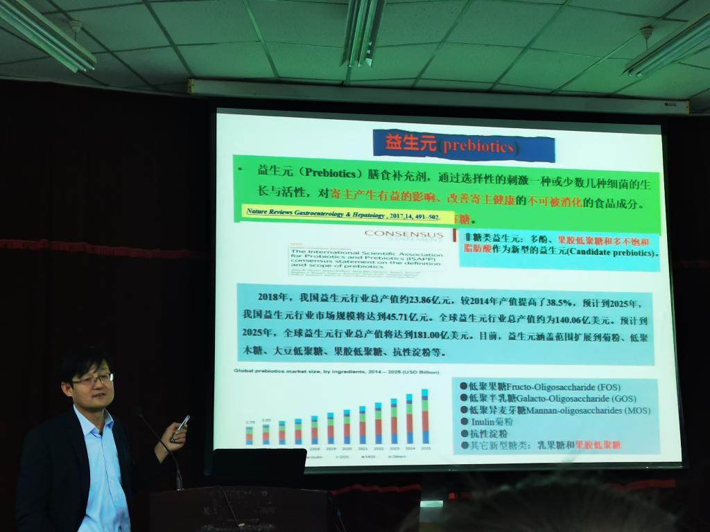 報(bào)告會(huì)上,倪永清教授向師生們細(xì)致講解益生菌、益生元、合生元和后生元的概念,詳細(xì)介紹微生物組學(xué)這一研究前沿的進(jìn)展,深入剖析腸道微生物與母嬰健康的關(guān)系,最后分享了自己的科研經(jīng)歷和切身感悟。報(bào)告前沿生動(dòng),科學(xué)研究與生產(chǎn)應(yīng)用相結(jié)合,博得了參會(huì)師生的共鳴及熱切回應(yīng)。