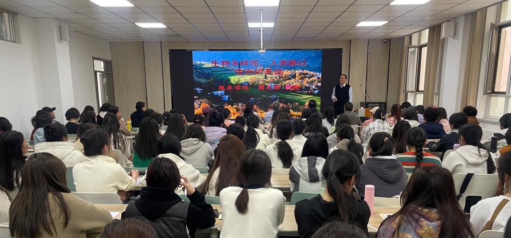 報(bào)告會上,周天林教授圍繞生物多樣性研究的重要意義、生物多樣性的價值以及隴東地區(qū)生物多樣性資源保護(hù)和利用等方面做了報(bào)告,倡導(dǎo)師生共同參與到生物多樣性保護(hù)的行動中來,從我做起、人人參與,讓保護(hù)環(huán)境、保護(hù)生物多樣性成為師生的行動自覺。同時,他分享了自己帶領(lǐng)團(tuán)隊(duì)克服各種難以想象的困難,堅(jiān)持從事教學(xué)科研工作和生物資源保護(hù)利用研究,取得了豐碩的成果,引導(dǎo)同學(xué)們要做一個心中有理想,腳下有力量的人。這既是一場精彩的學(xué)術(shù)報(bào)告,更是一堂生動的思政課。
