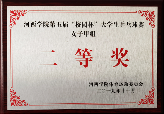河西學(xué)院第五屆“校園杯”大學(xué)生乒乓球賽女子甲組二等獎(jiǎng)