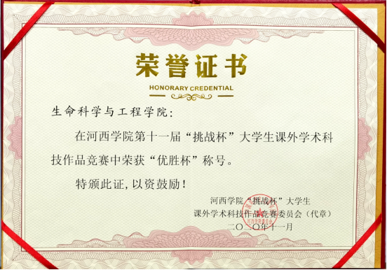 河西學(xué)院第十一屆“挑戰(zhàn)杯”大學(xué)生課外學(xué)術(shù)作品競賽“優(yōu)勝杯”