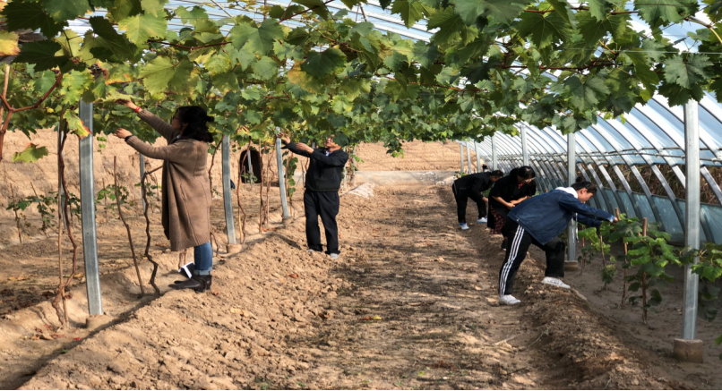 10月19日下午兩點,葡萄與葡萄酒工程教研室黨員師生一行5人,驅車前往甘州區(qū)龍渠鄉(xiāng)墩源村進行葡萄栽培技術指導和實操管理。