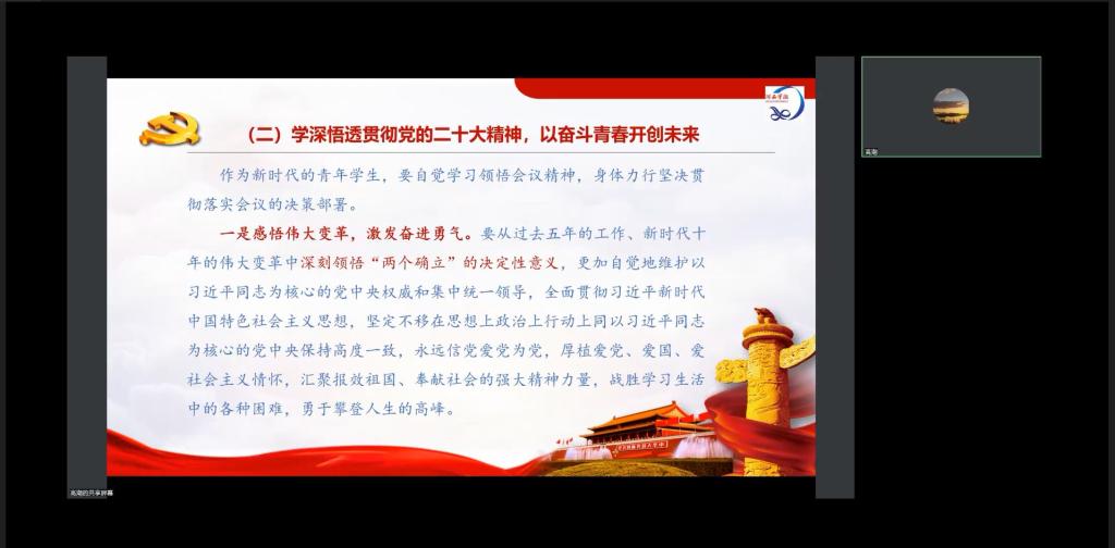 報(bào)告指出,學(xué)院黨政班子成員和師生黨員要帶頭深入學(xué)習(xí)宣傳貫徹黨的二十大精神,全院教師將思想統(tǒng)一到黨的二十大精神上來,把力量凝聚到黨的二十大確定的各項(xiàng)任務(wù)上來,把學(xué)習(xí)成效體現(xiàn)在促進(jìn)365英國(guó)上市官方網(wǎng)站高質(zhì)量發(fā)展的實(shí)際行動(dòng)上來。各位同學(xué)要自覺學(xué)習(xí)領(lǐng)悟會(huì)議精神,身體力行堅(jiān)決貫徹落實(shí)會(huì)議的決策部署,感悟偉大變革、激發(fā)奮進(jìn)勇氣,堅(jiān)定理想信念、抗牢時(shí)代使命,勤奮學(xué)習(xí)實(shí)踐、錘煉過硬本領(lǐng),歷練人格品質(zhì)、賡續(xù)壯美人生,厚植愛黨、愛國(guó)、愛社會(huì)主義情懷,把個(gè)人理想追求融入社會(huì)主義現(xiàn)代化建設(shè)的客觀需求,如饑似渴學(xué)習(xí)理論知識(shí)、專業(yè)知識(shí),積極實(shí)踐,努力創(chuàng)新,真正成為“有理想、敢擔(dān)當(dāng)、能吃苦、肯奮斗的新時(shí)代好青年”,為全面建設(shè)社會(huì)主義現(xiàn)代化國(guó)家,全面推進(jìn)中華民族偉大復(fù)興而團(tuán)結(jié)奮斗。